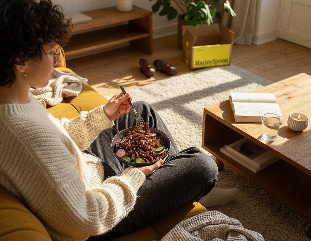 Mach deine Mahlzeiten zum besten Moment deines Tages. Wir liefern dir die volle Auswahl: Rezepte, fertige Mahlzeiten und Extras aus unserem Markt. So sparst du dir den Trip zum Supermarkt.